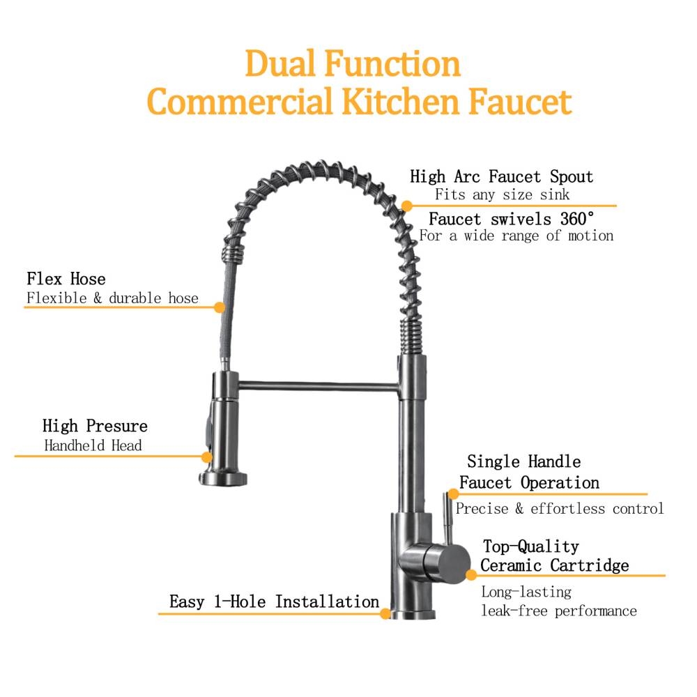 Modern, commercial-style dual function faucet. Designed for durability and convenience, it’s perfect for home kitchens, cafés, or restaurants.